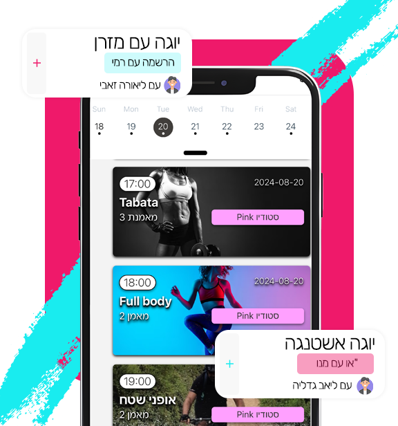 האפליקציה מאפשרת למשתמשים שלכם להירשם לחוג בצורה מהירה וברורה ובלי כאבי ראש מיותרים, לבטל (בהתאם לתנאי הביטול שאתם קובעים) לתפוס מקום ברשימות המתנה, לצפות במשתתפי האימון ואפילו סתם לקבל מידע על השיעור או המאמן (הכל מנוהל דינאמית וניתן להגדיר לפי עסק).